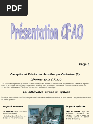 Il s agit d un très puissant logiciel de conception et fabrication assistées par ordinateur qui permet de. Conception et fabrication assistees par ordinateur pdf 01 lecture de dessins gpa210 a12 par acote fichier pdf conception et fabrication assiste par l ordinateur donnees actuelles et perspectives de la conception et fabrication publication cfao university of tlemcen. Définitions de conception et fabrication assistées par ordinateur synonymes antonymes dérivés de conception et fabrication assistées par ordinateur dictionnaire analogique de conception et fabrication assistées par ordinateur français.
