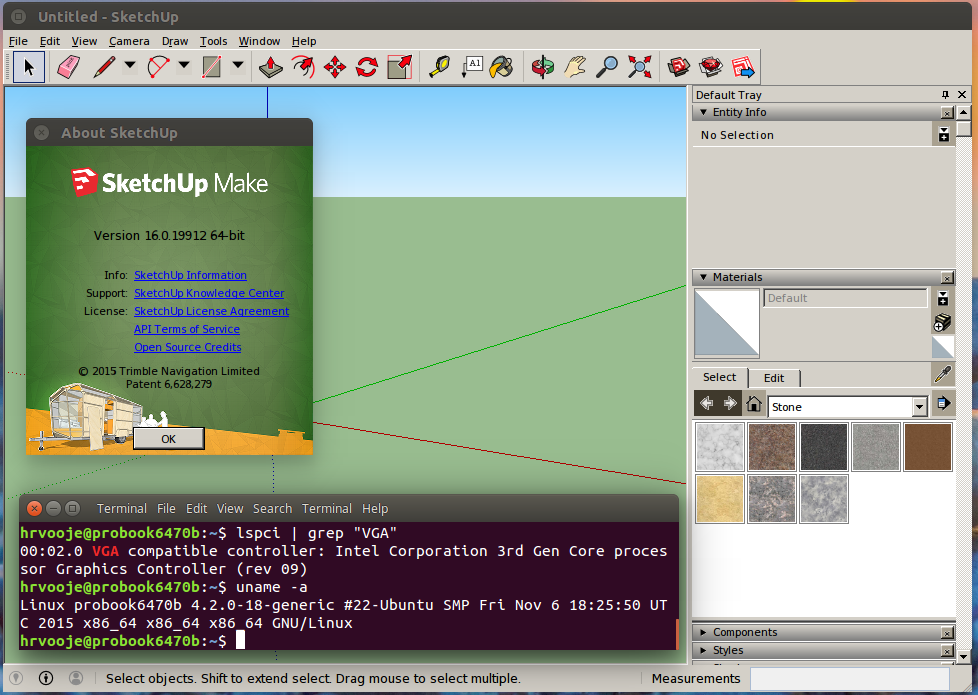 Sketchup is not available for linux but there are plenty of alternatives that runs on linux with similar functionality. We re talking sketchup on top of ubuntu 16 04 xenial xerus installed on a lenovo g50 laptop with intel hd graphics. Do you like tinkering around with new software.
